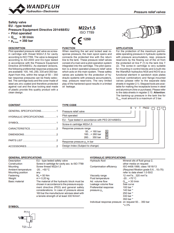 Safety valve pilot operated BVTPM22-Wandfluh