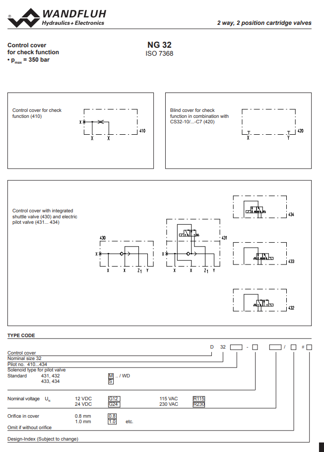 Cover for check functions for 2 position, 2-way cartridge valve D32_4-Wandfluh