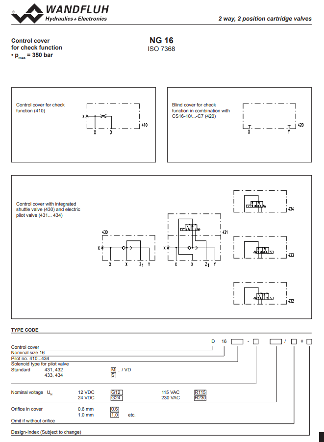 Cover for check functions for 2 position,2-way cartridge valve D16_4-Wandfluh