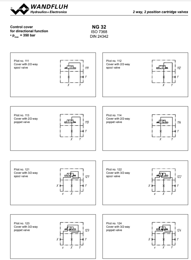 Cover for directional functions for 2 position, 2-way cartridge valve D32_1-Wandfluh