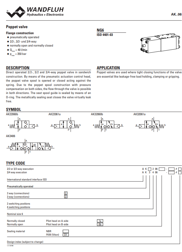 Poppet valves pneumatically operated flange construction AK2206-Wandfluh