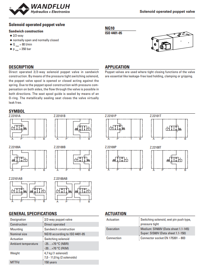 Solenoid poppet valve sandwich construction Z_2210-Wandfluh