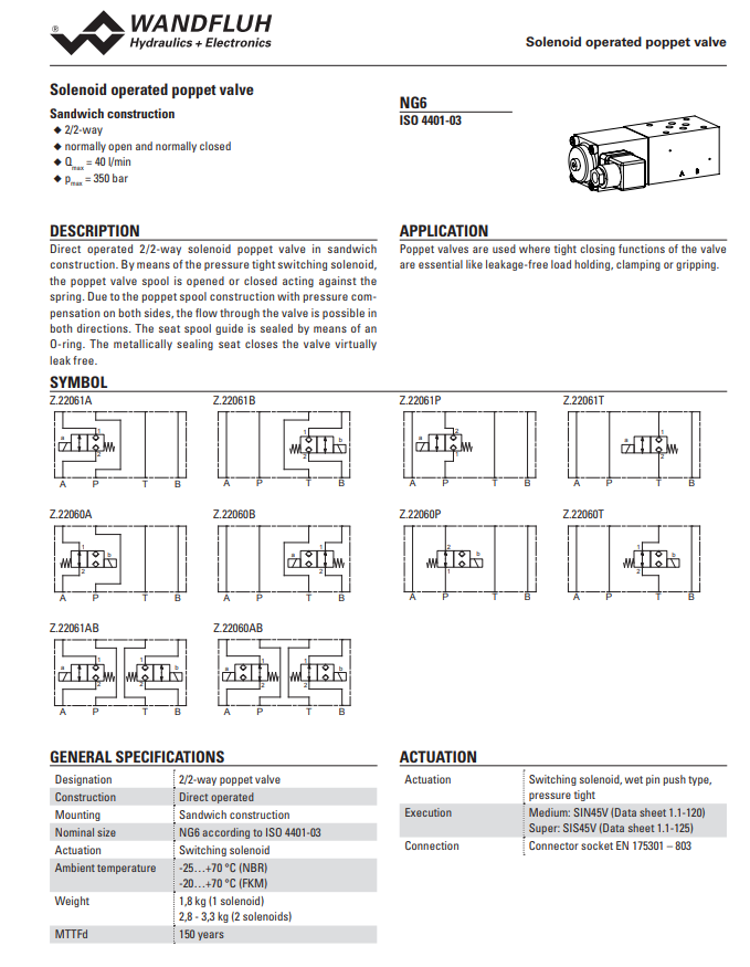 Solenoid poppet valve sandwich construction Z_2206-Wandfluh