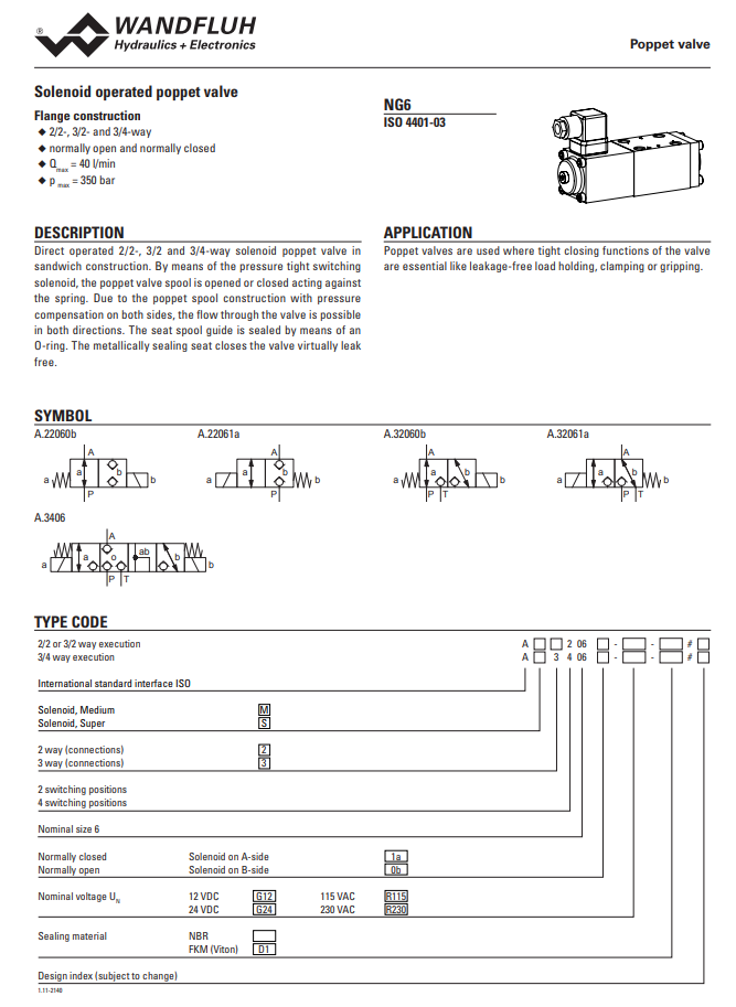Solenoid poppet valve flange construction A_2206-Wandfluh
