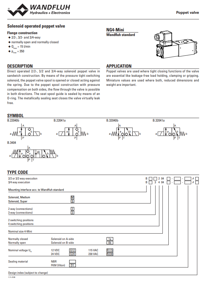 Solenoid poppet valve flange construction B_2204-Wandfluh