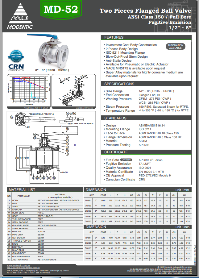 - Áp lực:, PN 10, PN 16, Jis 10K, Jis 20K Class 150 ~ Class 1500