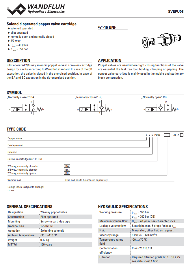 Poppet valve pilot operated SVEPU08_X5-Wandfluh