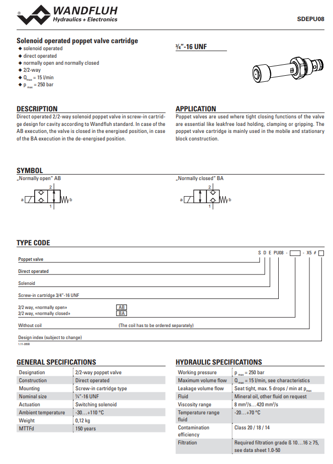 oppet valve direct operated SDEPU08_X5-Wandfluh