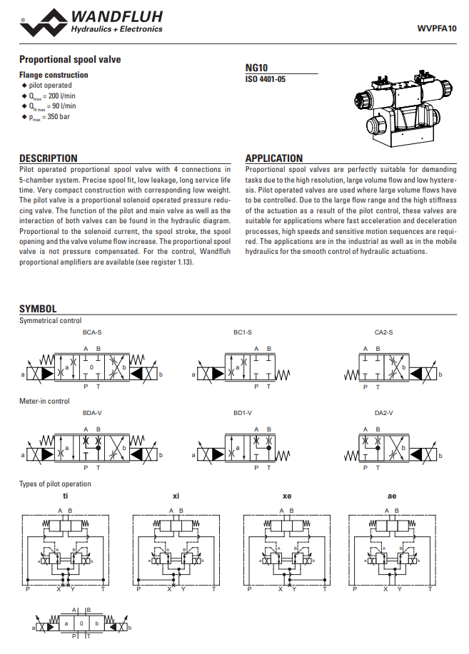 Proportional directional valve pilot operated WVPFA10_90_Z-Wandfluh
