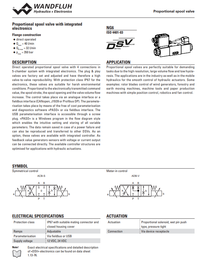Proportional spool valve (slip-on coil, integrated electronics) WDPFA06_ME-Wandfluh