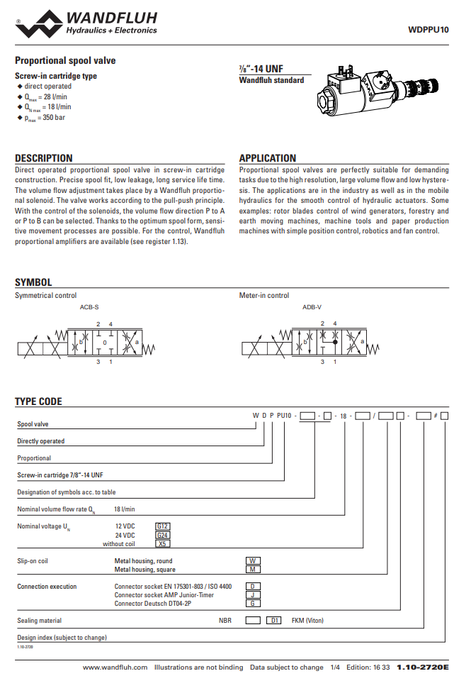 Proportional spool valve cartridge WDPPU10_18-Wandfluh