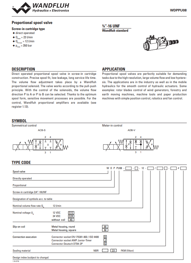 Proportional spool valve cartridge WDPPU08_12-Wandfluh