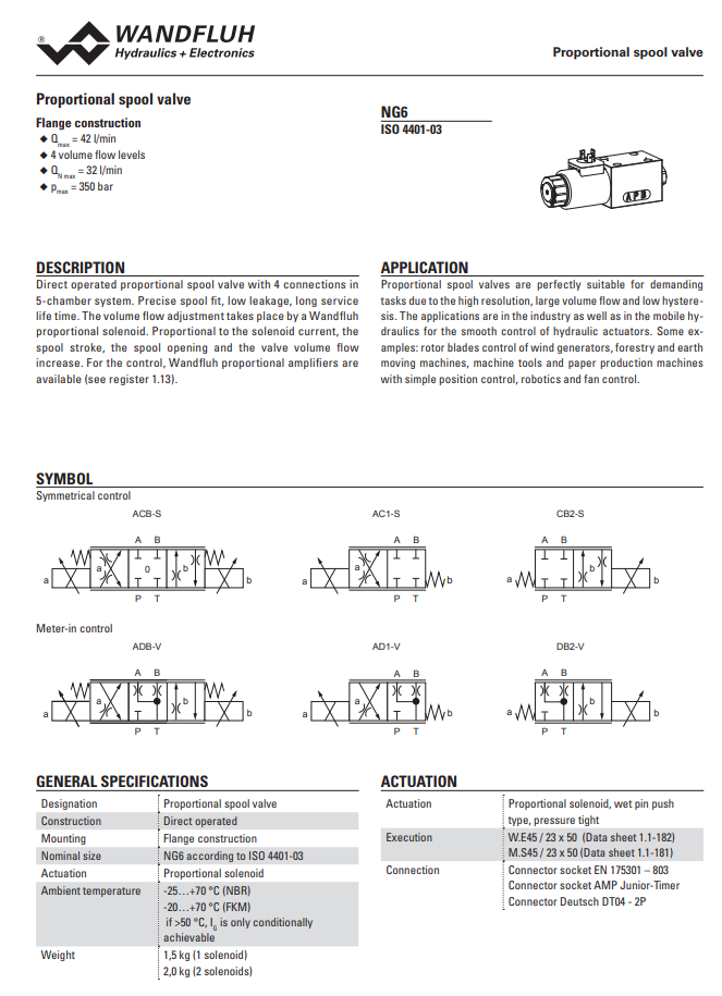 Proportional spool valve (slip-on coil) WDPFA06-Wandfluh