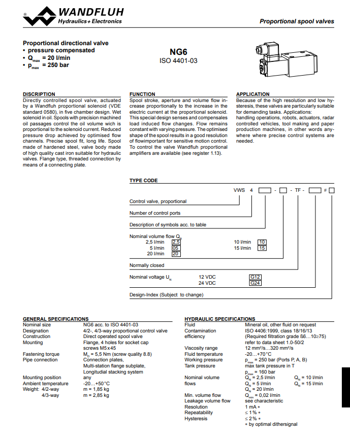 Proportional spool valve pressure compensated VWS4_6_TF-Wandfluh