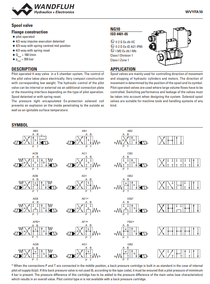 Solenoid operated spool valve pilot operated explosion proof Ex d II C WVYFA10-Wandfluh