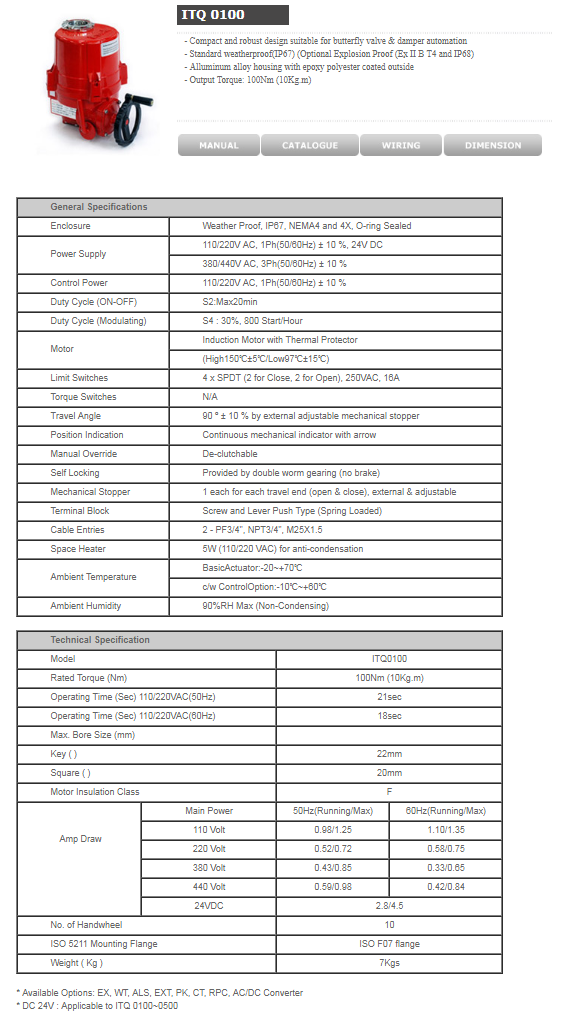 - Đóng mở: Điện điều khiển Model: ITQ 0020 ~ITQ 9000