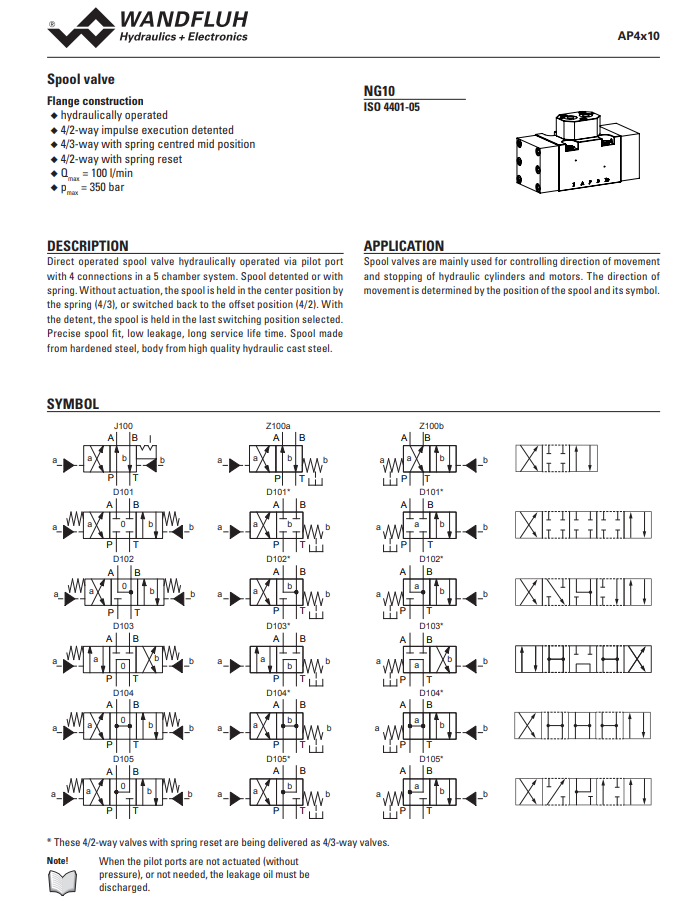 Hydraulic operated spool valve AP4_10-Wandfluh