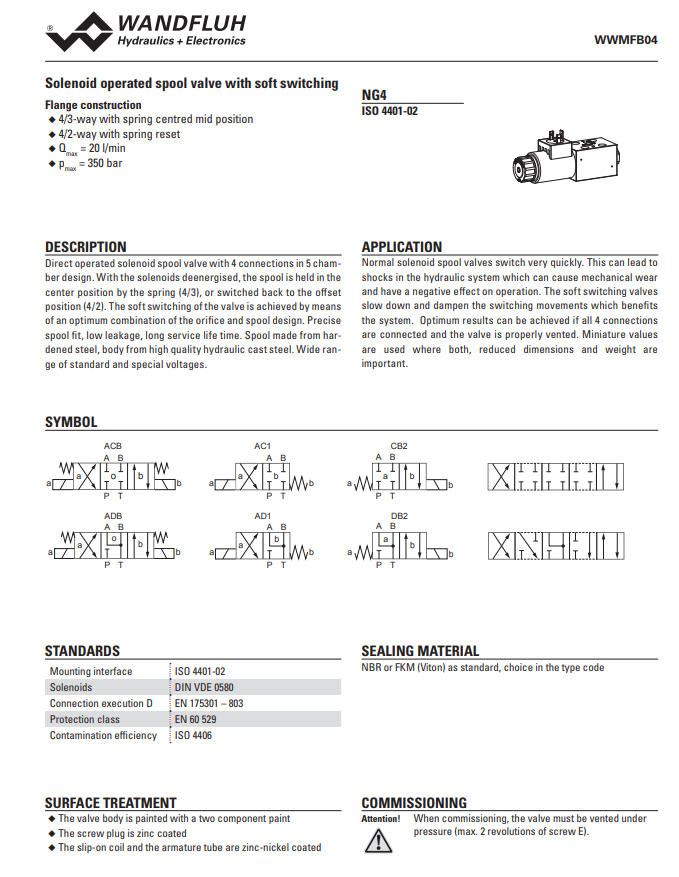 Solenoid operated spool valve soft switching (slip-on coil) WWMFB04-Wandfluh