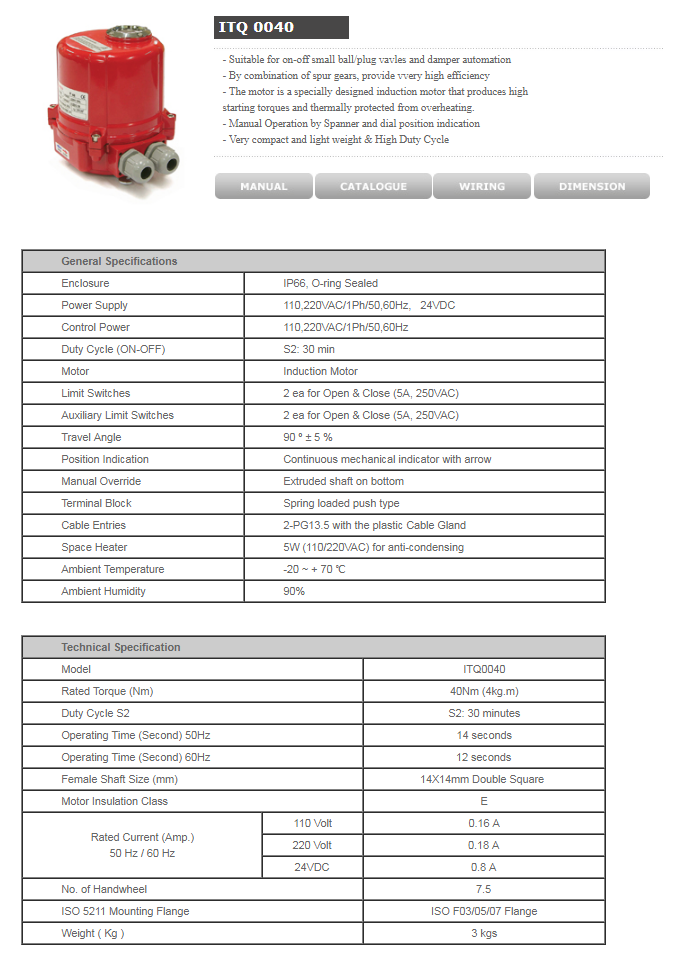 - Đóng mở: Điện điều khiển Model: ITQ 0020 ~ITQ 9000