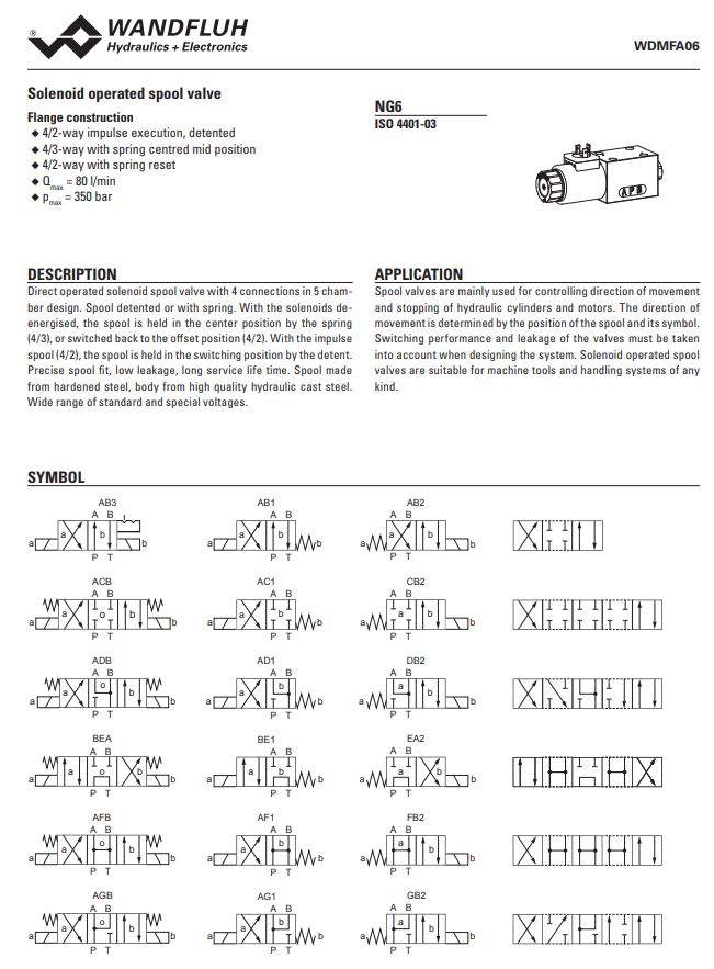 Solenoid operated spool valve flange construction WD_FA06_Z546-Wandfluh