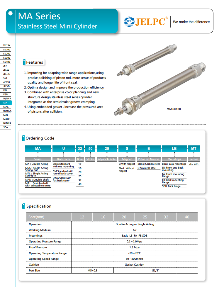 MA Series Stainless Steel Mini Cylinder