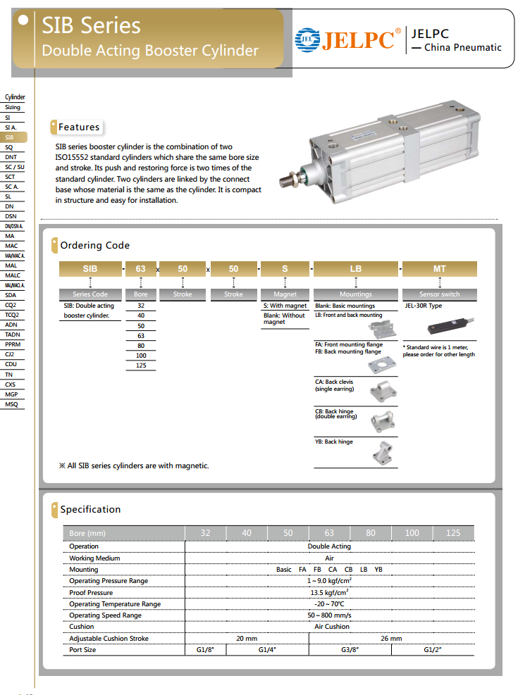 SIB series double acting booster cylinder