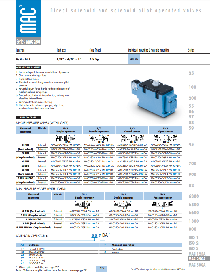 VAN ĐIỆN TỪ SERIES 250 HIỆU MAC USA