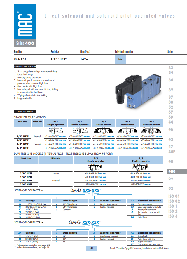 VAN ĐIỆN TỪ SERIES 400: 411A, 421A, 451A, 461A MAC USA