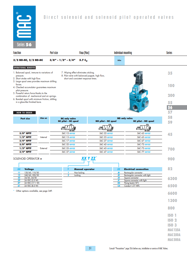 VAN ĐIỆN TỪ SERIES 56: 56C-12 ~56C-77 MAC USA