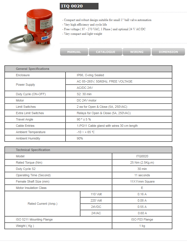 - Đóng mở: Điện điều khiển Model: ITQ 0020 ~ITQ 9000