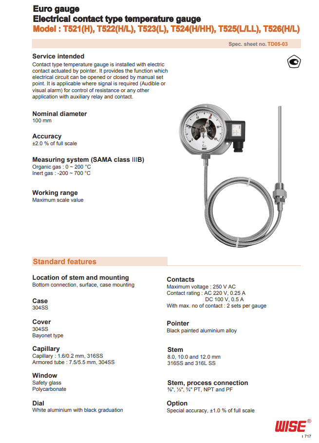 Đồng hồ nhiệt model: T521, T522, T523, T524, T525 - WISE