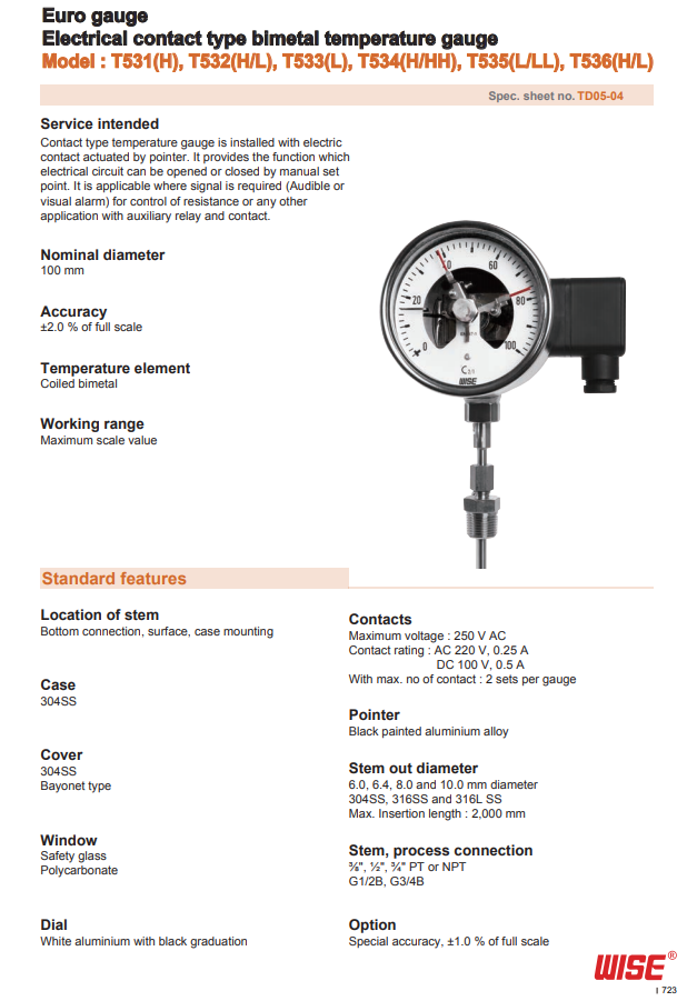 Đồng hồ nhiệt model: T531, T532, T533, T534, T535- WISE
