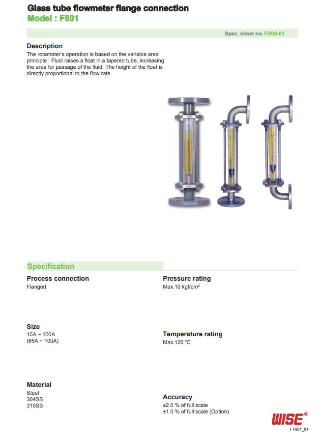 Glass flowmeter model: F801 - WISE