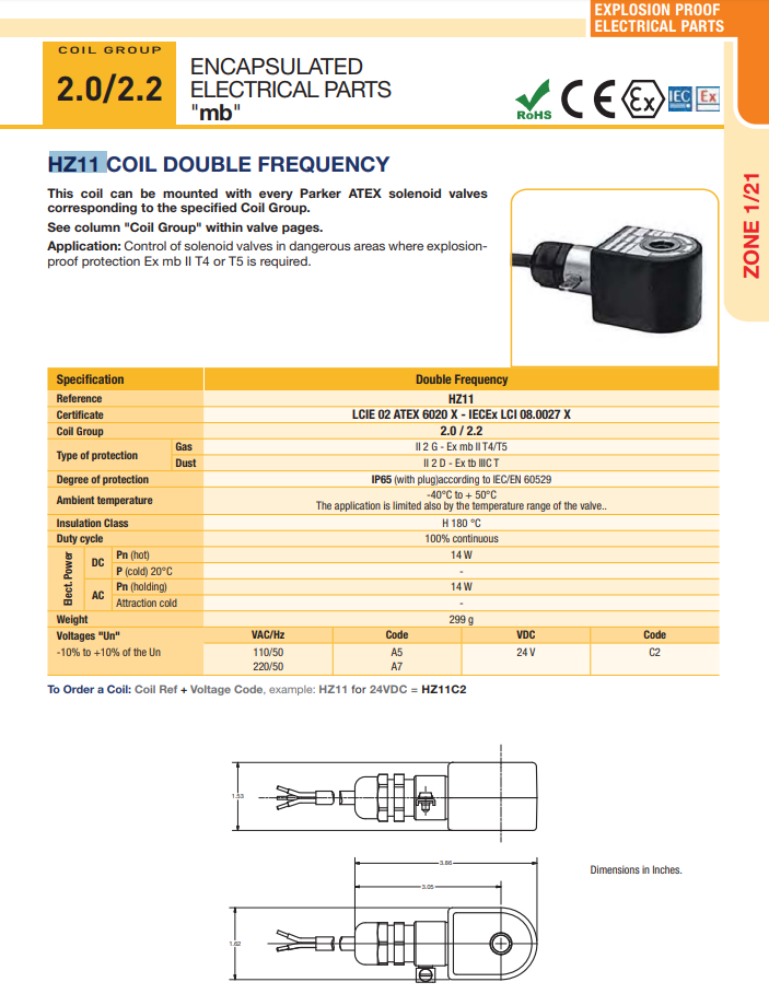 Coil điện Parker HZ11