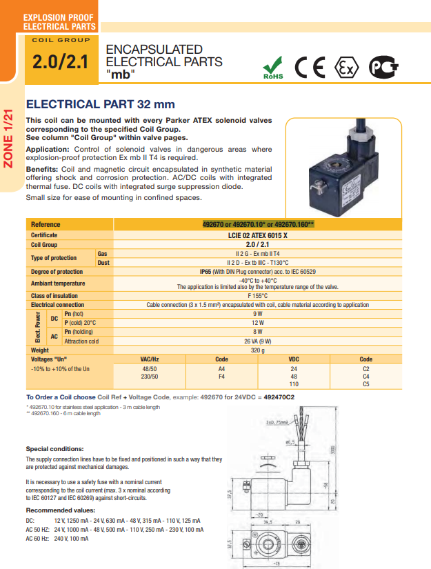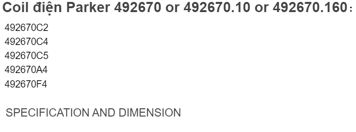Coil điện Parker 492670 or 492670.10 or 492670.160