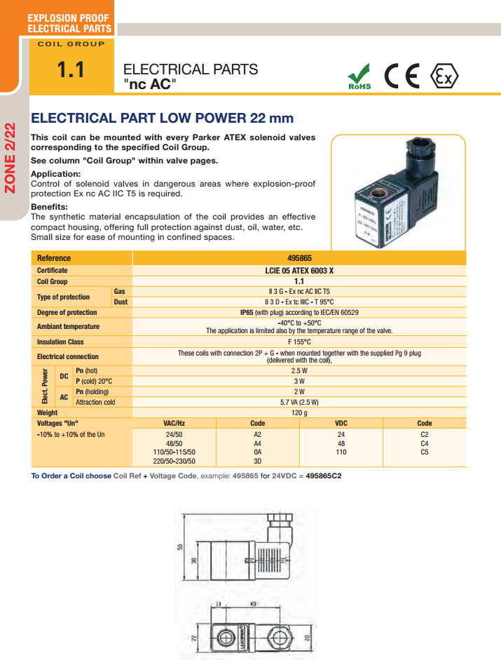 Coil điện Parker 495865 :