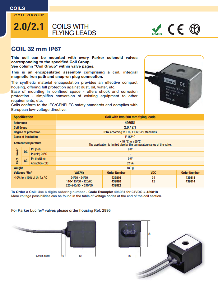Coil điện Parker 496081