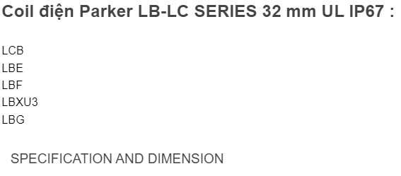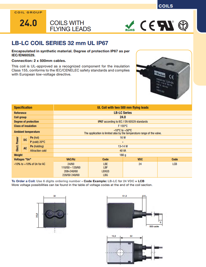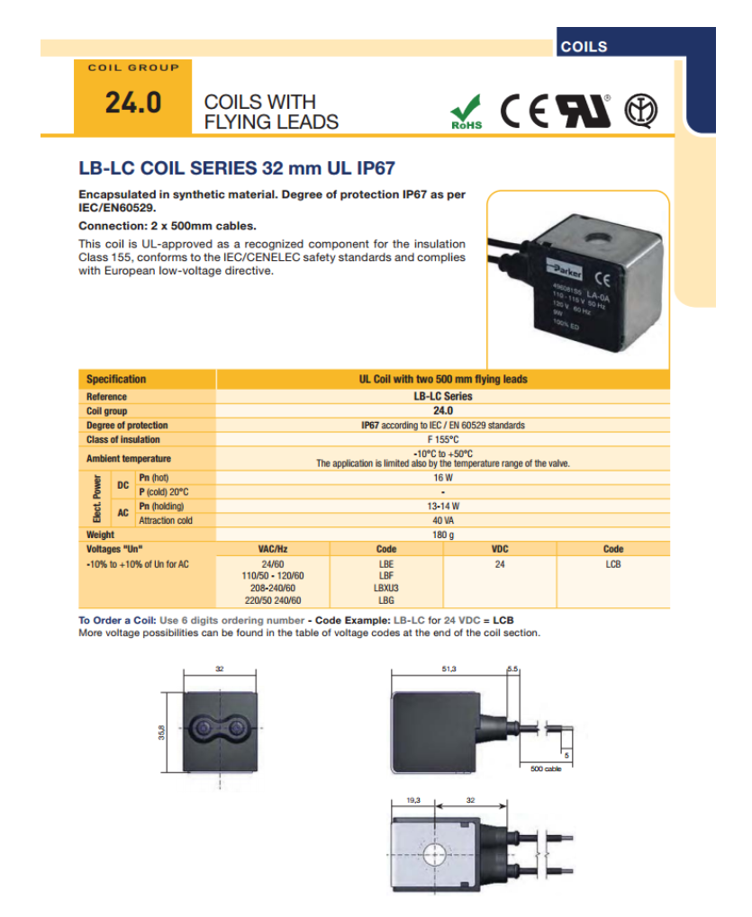 Coil điện Parker LB-LC SERIES 32 mm UL IP67