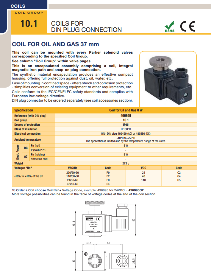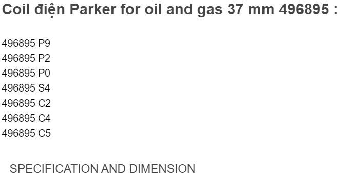 Coil điện Parker for oil and gas 37 mm 496895