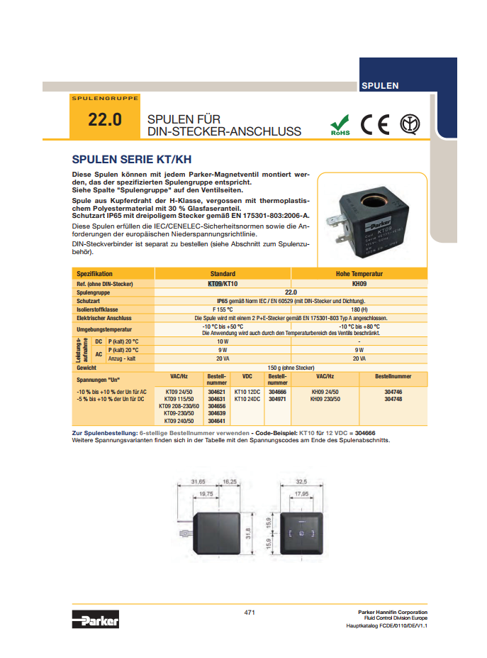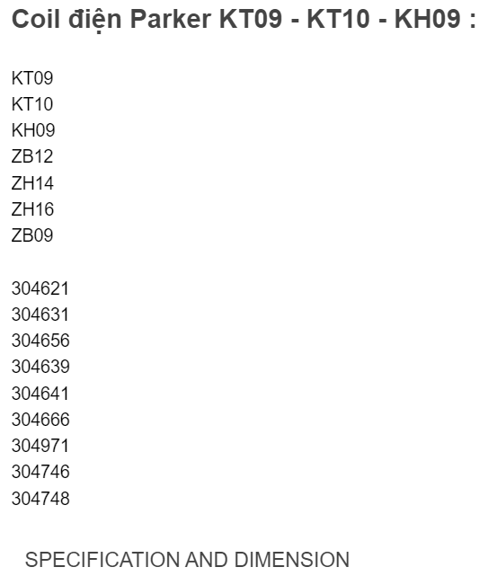 Coil điện Parker KT09,KT10,KH09