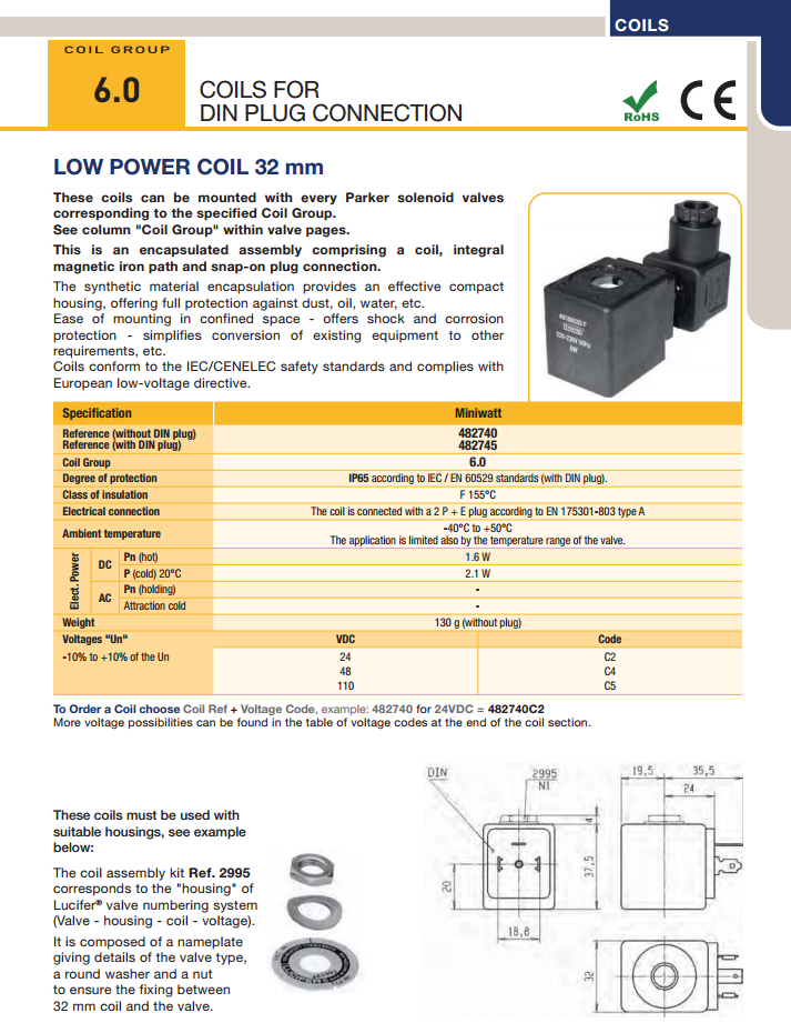 Coil điện Parker 482740, 482745