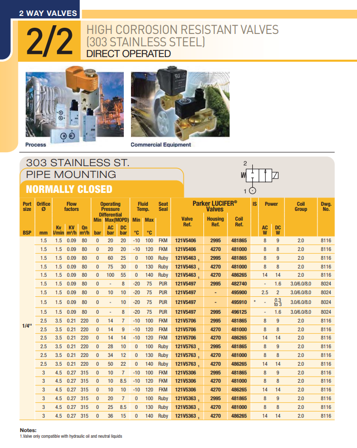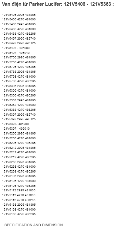 Van điện từ Parker Lucifer: 121V5406 - 121V5363