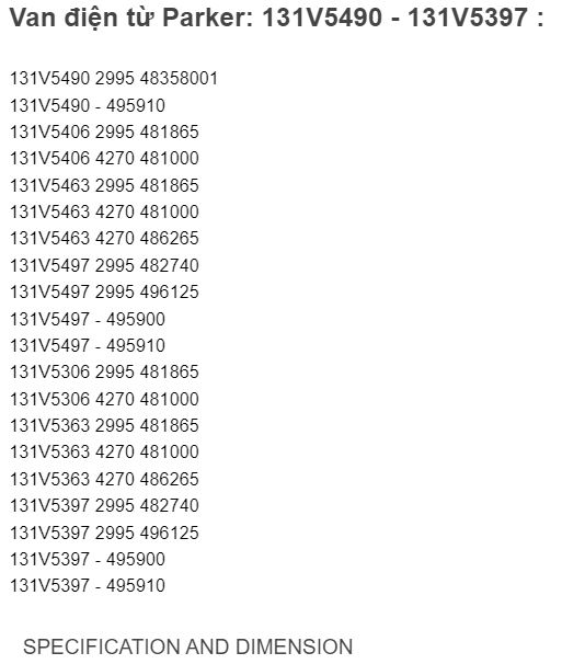 Van điện từ Parker: 131V5490- 131V5397