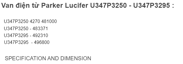 Van điện từ Parker Lucifer: U347P3250 - U347P3295