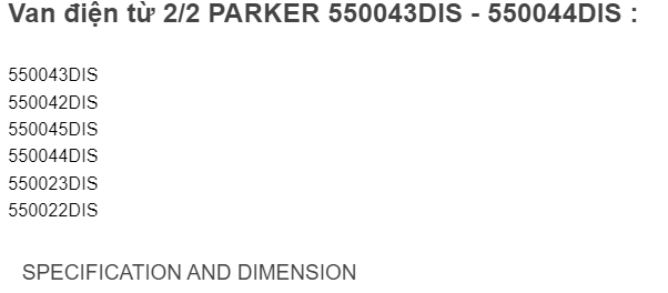 Van điện từ 2/2 PARKER: 550043DIS - 550044DIS