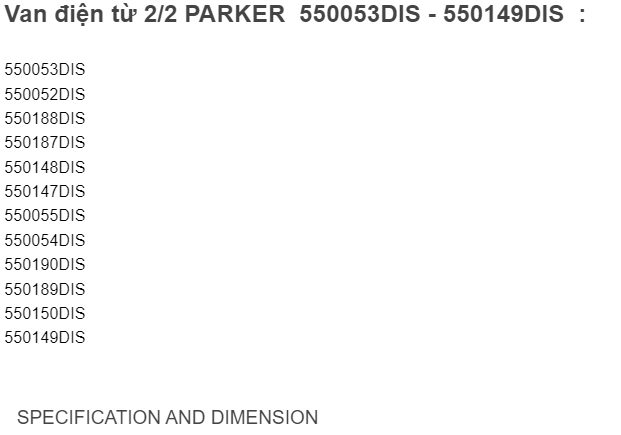 Van điện từ 2/2 PARKER: 550053DIS - 550149DIS