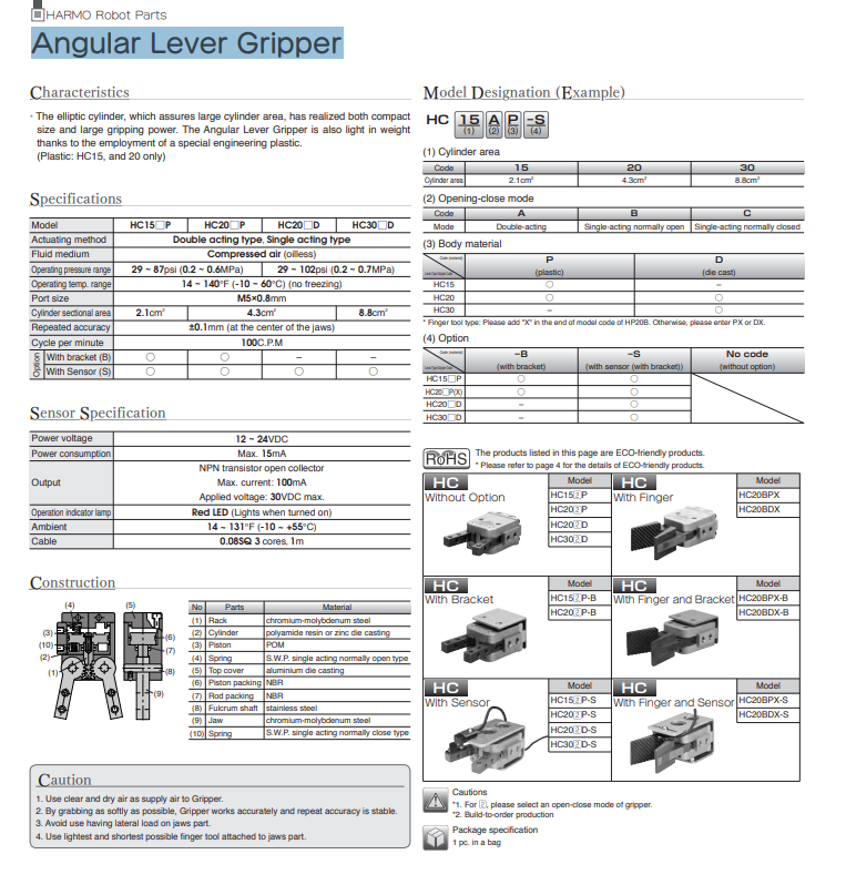 Angular lever gripper PISCO: HC15...P~HC30...D-S
