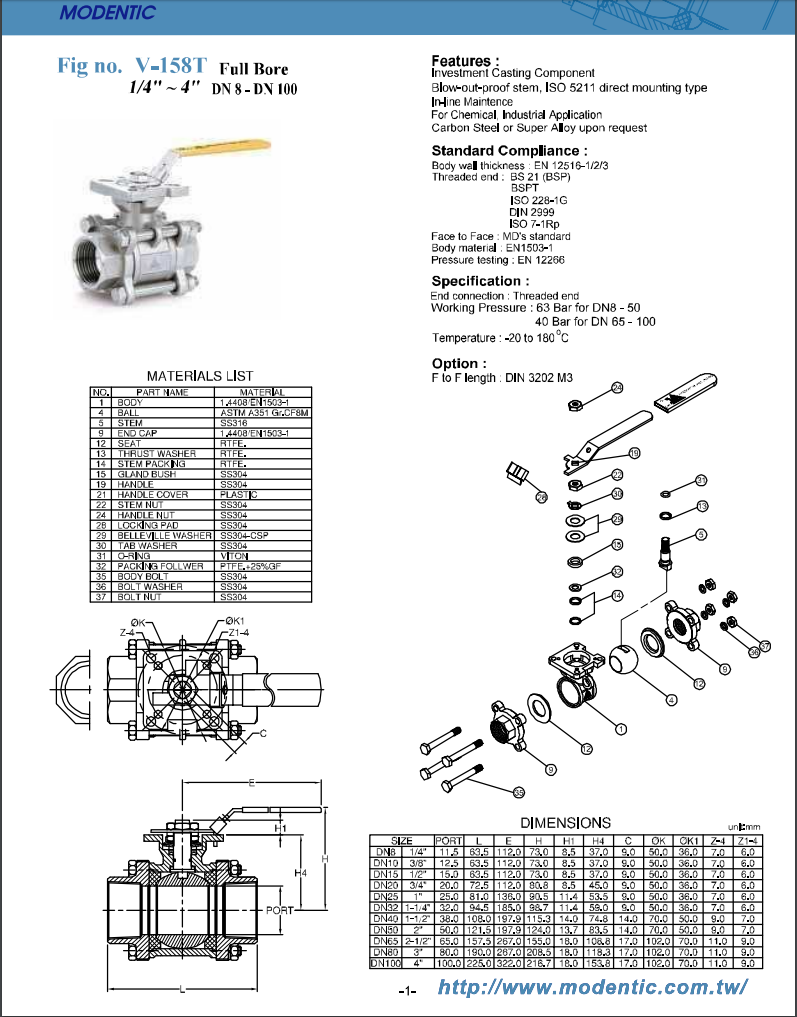 Van bi khí điều khiển: Thông số kỹ thuật van bi
