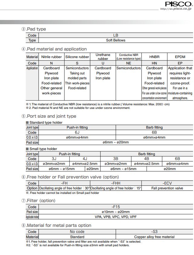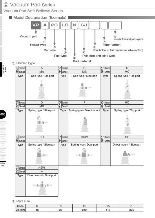Vacuum pad soft bellow : VPA, VPMA, VPB, VPMB, VPHE, VPHEW, VPHC,VPHD...