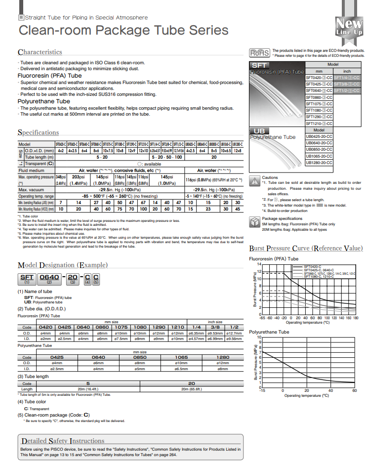 Clean room tubing: SFT-CC, SET-CC, UB-CC